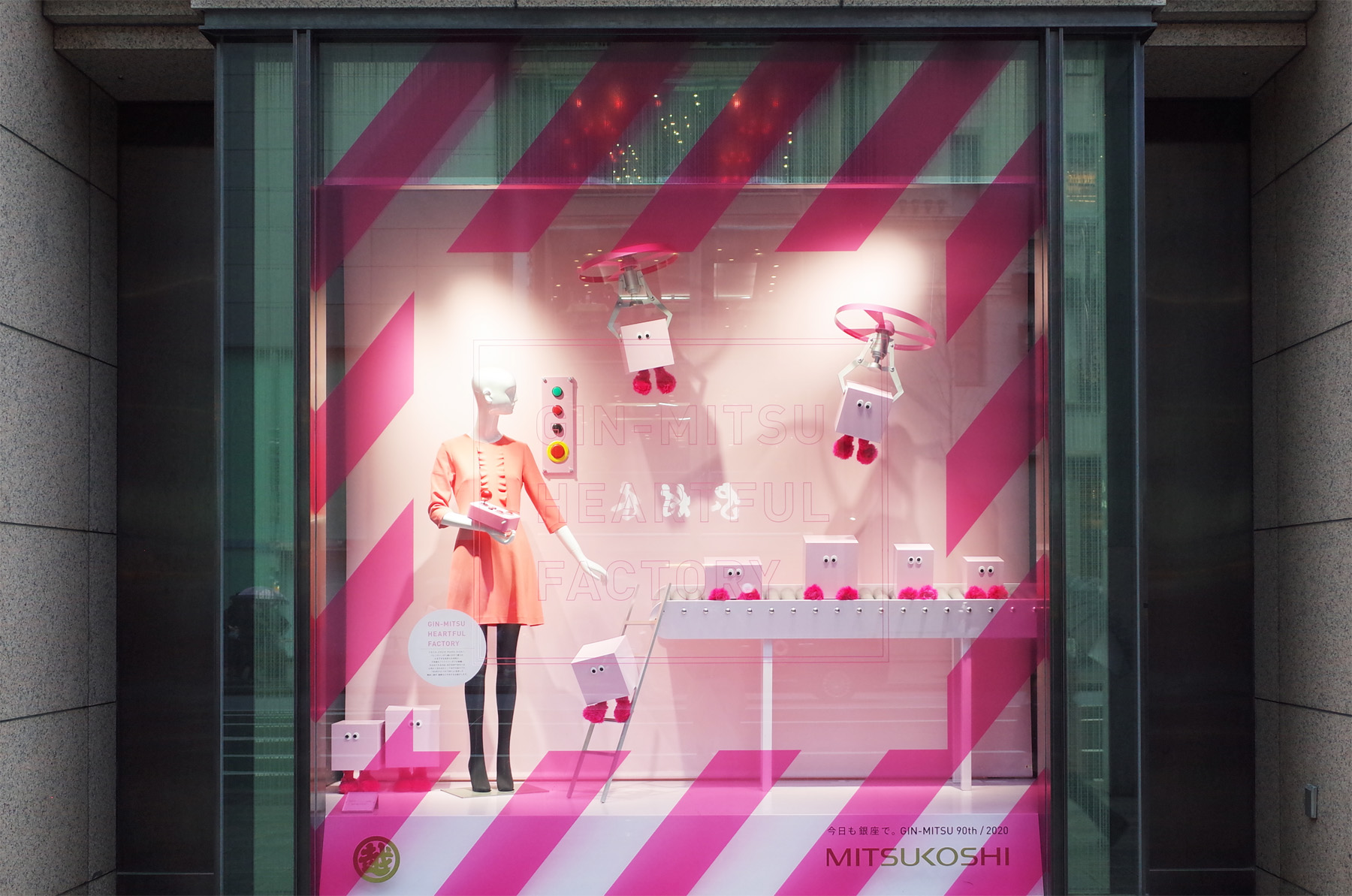 銀座三越が開催した「GIN-MITSU HEARTFUL FACTORY」。バレンタインから春にかけて膨らむ、ドキドキやワクワクする気持ちを、「ハート」を材料にした不思議なファクトリーがフル稼働というコンセプトで展開されています。こういった現実にはない幻想的なコンセプトや世界観を楽しめるのも、バレンタインの魅力です。味覚や視覚などの五感を刺激する、銀座三越でしかできない体験や仕掛けがいっぱいありました。HEARTFUL FACTORYに変身した銀座三越のディスプレイがバレンタインシーズンを楽しくキュートに演出しています。