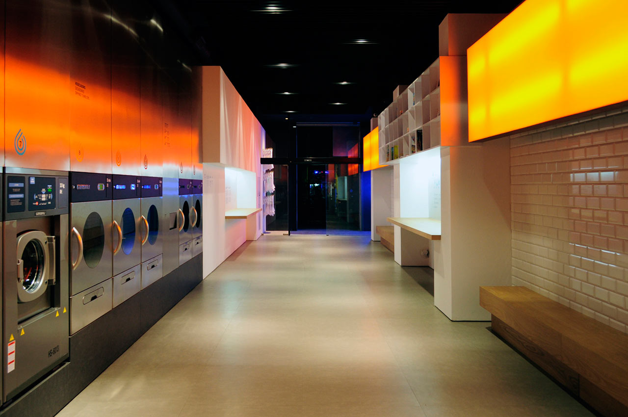 アイデアカラフルな照明で店舗に温かい雰囲気をつくるコインランドリーのデザイン照明